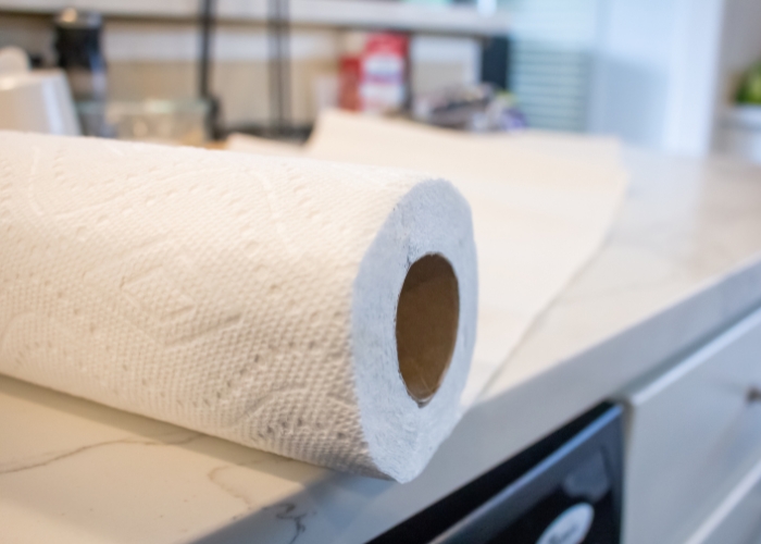 Use disposable paper towels to clean up countertops and other kitchen surfaces. Sponges or towels can provide a warm, moist environment where harmful bacteria can live and grow when they are used and reused to clean messes.